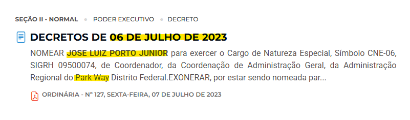 https://dodf.df.gov.br/dodf/materia/visualizar?co_data=315638&p=decretos-de-06-de-julho-de-2023&busca=exata#termo=Jos%C3%A9%20Luiz%20Porto%20Junior:~:text=NOMEAR%20JOSE%20LUIZ%20PORTO%20JUNIOR%20para%20exercer%20o%20Cargo%20de%20Natureza%20Especial%2C%20S%C3%ADmbolo%20CNE%2D06%2C%20SIGRH%2009500074%2C%20de%20Coordenador%2C%20da%20Coordena%C3%A7%C3%A3o%20de%20Administra%C3%A7%C3%A3o%20Geral%2C%20da%20Administra%C3%A7%C3%A3o%20Regional%20do%20Park%20Way%20Distrito%20Federal.